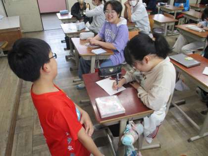 たてわり活動に向けて,活動内容を確認しました。どのグループとも相談しながら,みんなが楽しめるような活動内容を反し合いながら決めました。