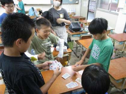 今日はあいにくの雨で校舎で休み時間を過ごしました。教室では話をする子,トランプをする子などそれぞれのリラックス方法で過ごしました。