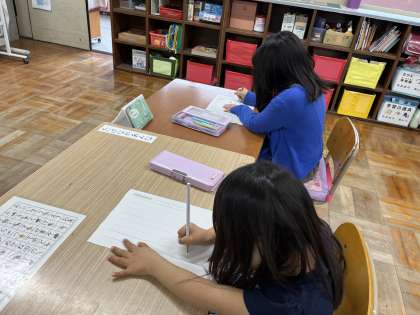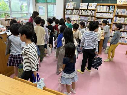 5月28日(火)の様子です。今日は,2年2組のみんなと図書室に行きました。図書の西村先生が,読み聞かせをしてくださっている間,みんなと一緒に座って行儀よく聞くことができていました。読んでもらった本の題名をノートに書いたり,かりたい本を選んで列に並んで借りたりと,図書室のルールを守って上手に利用することができました。