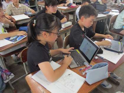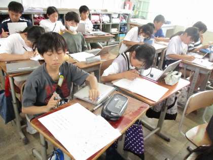 俳句を作りました。これまでの学習でも俳句を作る機械はあったのですが,5年生ではさらにレベルアップした俳句となるように,表現の工夫をしています。ひらがな、カタカナ、漢字で表すことで受ける印象が変わることや、直接的な表現をせずに俳句を作るなどしています。