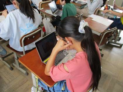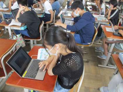いよいよALTの先生にクイズを出します。今日はその準備をしました。これまで考えてきたことをパワーポイントでまとめました。最後までGIGA端末で発言を聞くなど一生懸命頑張っていました。