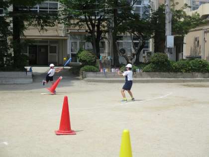 ベースボールでは連携した守備を目指しながら声掛けを一生懸命している姿が見られました。一人一人のレベルアップだけではなく、チーム全体としての視点を持ち、作戦を練っています。チームワークを大切にして、「ナイス!」「おしい!」とあたたかい声をかけていました。