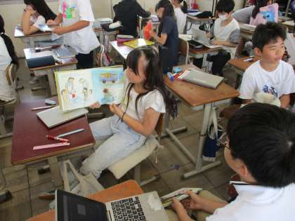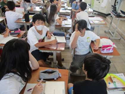 情報を整理する練習をしました。文章の前後を読んで,どのような言葉でつなげると良いかを班で考えました。その後はたてわり活動にむけて読み聞かせの練習をしました。