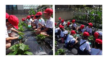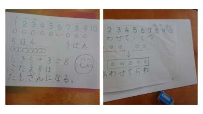 畑で育てているサツマイモなえに水やりにいっています。サツマイモの葉が増え始めました。また,算数科ではたしざんの学習が始まりました。ノートを使って学習し始めました。自分考えを書いて、とても丁寧に書くことができるように頑張っています。