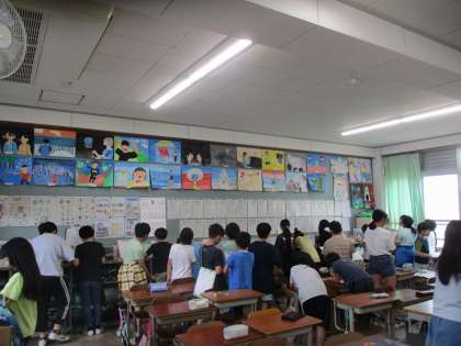 3クラスの友達の作品を見比べて、これからの自分の作品作りにいかせる技術や素晴らしい表現を見つけました。