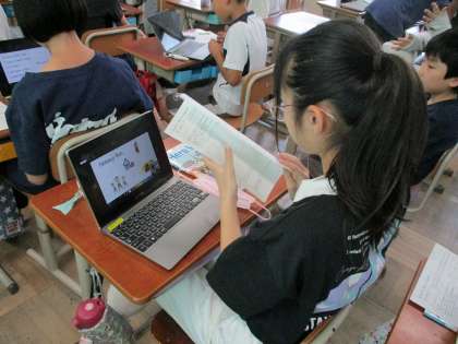 誰でしょうクイズも終盤に入りました。多くの子がパワーポイントでまとめた資料に音声を入れるところまで進みました。発音や表現の方法に気を付けながら録音をしていました。