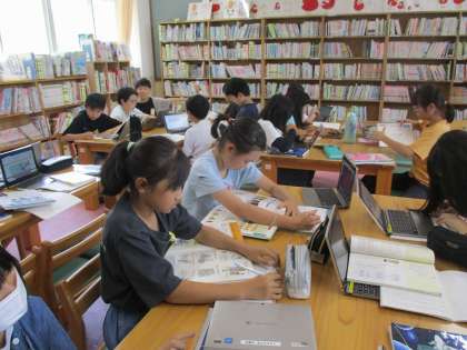 図書館に行って、調べ学習をしました。正しく引用することや出典をメモするなど、引用する際のポイントを押さえて調べ学習をしました。友達に興味をもって読んでもらえる報告文になるようまとめていきます。