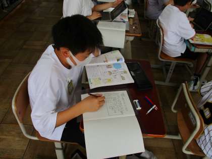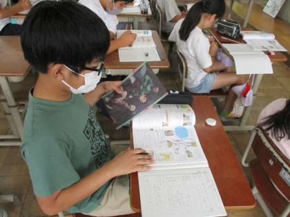 子育てと政治がどのように関わっているか調べています。教科書やGIGA端末を使って調べています。たくさんの情報を得ることはできたかな?