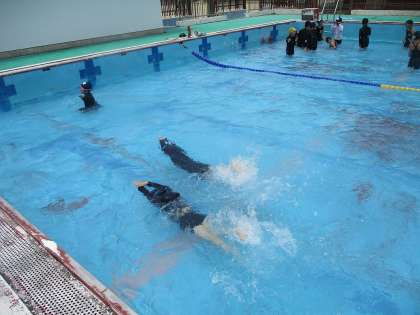 ビート板を使った蹴伸びの練習や、ボビングの練習など、今後の水泳指導につながる体の使い方を学習しました。
