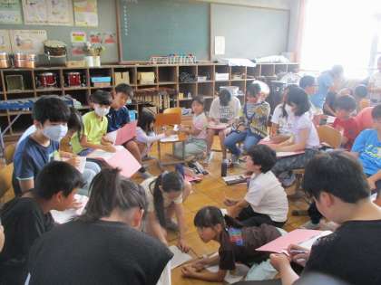 グループに分かれて音楽づくり。