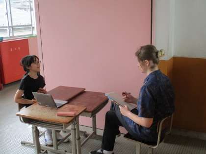 パフォーマンスチャレンジをしました。これまで考えてきた誰でしょうクイズをALTの先生に披露しました。どの子も対話を楽しんでいる様子でした。