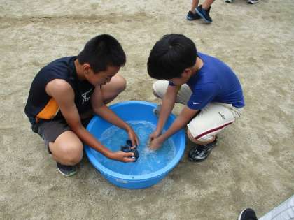 洗濯の学習をしました。意図的に汚した靴下を一生懸命,手洗いをしました。今は教室で干しています。