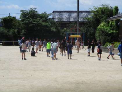 チャイムが鳴る5分前、何となく運動場から子どもたちが教室へと向かいます。チャイムと同時に授業が始められるように、自然と動きが身に付いています。子ども達が返ってきた教室は、一気に温度が上がります。エアコンのおかげですぐに汗は引くのですが、何となく火照った状態で学習は始まります。子ども達の切り替えは見事なので、学習はスムーズに始められています。