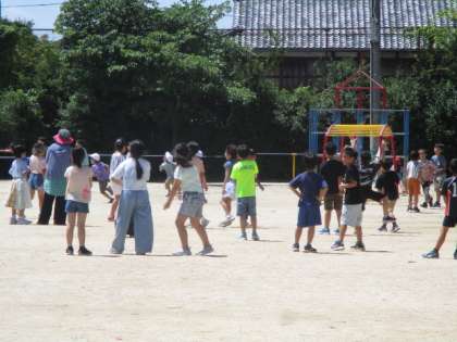 汗を滴らせながら、懸命にボールを追いかけ、速いボールを投げる子も増えてきました。そのボールを受けようと立ち向かう子も、男女を問わずいます。先生たちもできるだけ交じりながら、子どものボールを受けようとします。が、4月よりも速くなっていることに気付きます。手も大きくなってきていて、しっかりとボールに体重を乗せて投げている子が増えています。そのせいで、よく当てられます。
