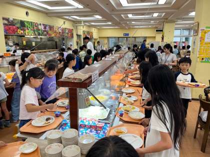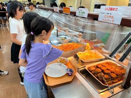 夕食はバイキングでした。料理をとりすぎた人もいましたが、おいしくいただきました。みんな元気に過ごしています。