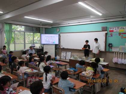 代表委員の子が1年生に内容を伝えに行ってくれています。学校のことをわかりやすく教えてあげるのも大事な役目です。これからもよろしく!