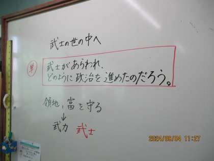 ついに武士が登場しました。武士が登場したことにより政治の進めた方どのように変わるのかを学習問題にして学習を進めています。武士が好きな子が多いので発言数も多いです。