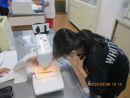 ミシンで縫い始めました。ミシンのセッティングに苦労しましたがその後は順調に縫うことができました。丈夫なトートバッグが作れそうです!