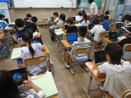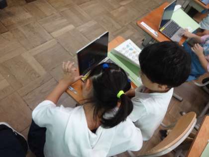 GIGA端末で電源のつけ方やログインの仕方を学びました。とても難しい作業でしたがサポートしてもらいながら頑張りました。学習のためにこれからGIGA端末をつかっていきます。