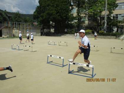 ハードル走の学習は「インターバルの間を速く走る」ことを学習課題にして進めていきました。抜き足を素早く前にもって動かそうとしている姿が印象に残っています。