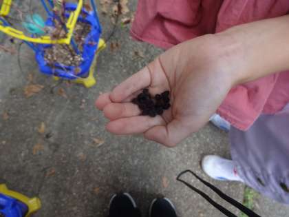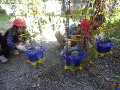 アサガオの種とりも終えて、ツルをリースにするために支柱から取り外してリースの形を作りました。大きく育っていたので立派なリースが作れそうです。しばらく乾燥させてこれから秋の実など飾りをつけていきます。