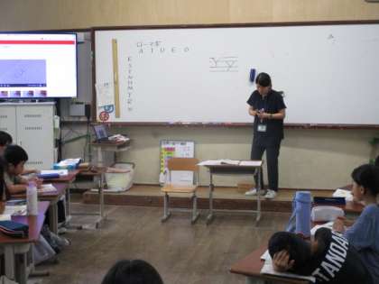 国語では初めてのローマ字の学習です。実際には、すでに「キーボー島」を使って、ローマ字は学習しています。それまでフリックでひらがなで入力していた方法から、キーボードをローマ字で打って入力しています。ですから、ローマ字の仕組みはほとんどの子が習得している段階です。