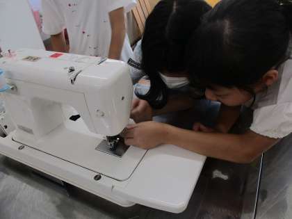はじめてミシンに挑戦しました!上糸を付けて、下糸を付けてと試行錯誤しながら取り組んでいます。「下糸がうまくでてこない!」と苦戦している人もいました。来週からはランチョンマットをミシンで作ります。