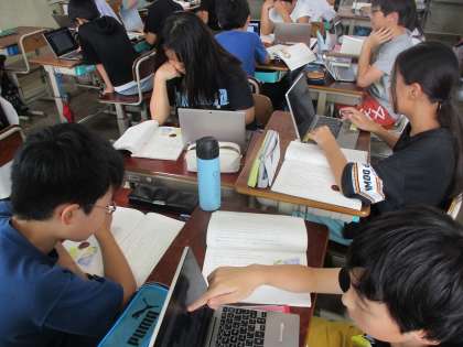たずねびとの学習では、原爆供養塔で毎日掃除をし、主人公の綾に大きな影響を与えるおばあさんについて深く読み取りました。実際にモデルとなった人の映像を見て、今でも遺族を探し続ける思いに触れました。