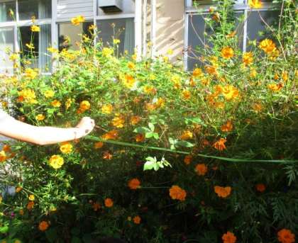 そこら中で咲いたキバナコスモスも盛りを過ぎ、種が付いています。こぼれた種がもう芽吹いています。給食室南側の運動場プランターや側溝で、つぼみをつけた新しい芽が大きく育っています。スポーツフェスタの頃にはいくつか咲いてくれていることでしょう。そして、オシロイバナも種がどんどんついています。キバナコスモスやオシロイバナ、その近くに落ちていたヒマワリなどの種を集めて持ち帰る子もいます。キバナコスモスは今蒔いたら芽吹いて咲くかもしれません。他の花は、来年春に撒いてやってほしいですね。