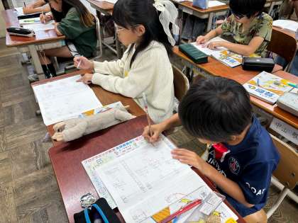 2けたでわるわり算の筆算の学習では、どんどん難しい問題に取り組んでいます。「自分たちの力で解けた」が子どもたちの大きなモチベーションにつながっています。そのため、商を何度か立て直さないといけないような問題では、最初から解き方を確認するのではなく、まずは一人で解き方を考えました。「無理やったら数を小さくするんや!」とひらめいたり、友だちと考え方を話し合ったりしたことが、自信につながっていました。