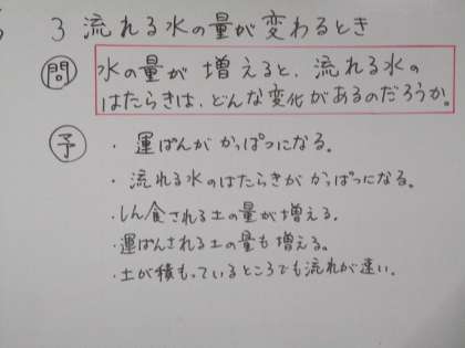 流れる水の量が変わるとどうなるか実験計画を立てました。