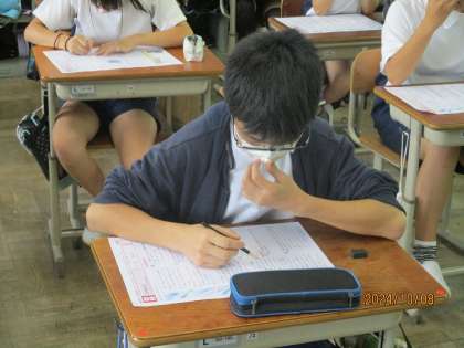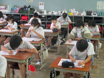 やまなしのテストをしました。本文をよく読み、必要な部分を考え記入する。そして見直し。自分の力は発揮できたかな?