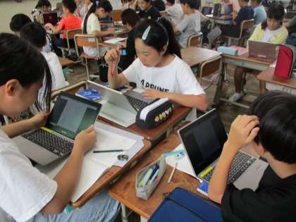 御伽草子の浦島太郎を読みました。みんなが知っているおなじみの浦島太郎とは少し話がちがってとても驚いていました。また、古典を読んでヒントなしに現代語訳したりしてみました。昔の言い方であっても、グループで話合いながら話の展開を予想していました。