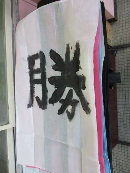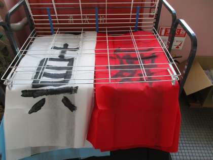 子どもたち一人一人が、はっぴに自分の気持ちを込めた漢字一文字をかいています。