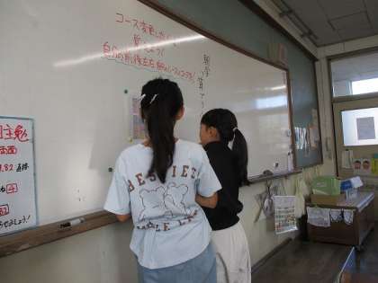 80メートル走では、何レースの何コースで走るのかを書いた紙と、鳴子踊りで自分が踊る大体の場所を書いた紙を持ち帰っています。お子さんと確認して頂き、当日来られる際にはどの辺りから観覧されるのかを決めてもらえればと思います。
