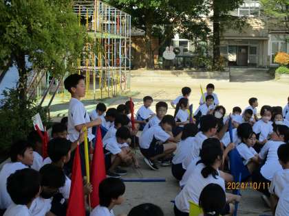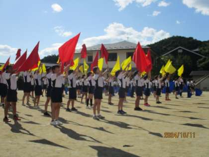 スポーツフェスタ前日。リハーサルでした。一生懸命フラッグを振っていました。明日は小学校生活最後のスポーツフェスタ。一振りに思いを込めて…