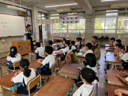 朝の帯時間に、読み聞かせに来てくださいました。みんな興味深々に聞いていました。「読書の秋」を楽しみたいです!