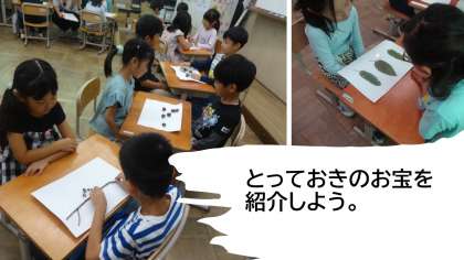 学校の近くやわきの山で見つけたものを紹介しました。葉っぱやどんぐりなど自分がお気に入りだとおもうことを話しました。どんなおもちゃをつくろうとしているかも話すとアドバイスなどをお友達からもらうことができました。遠足でもたくさん秋みつけをしましょうね。