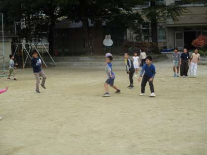 で、この日の休み時間はボールが1個でしたが、翌日の休み時間のドッジボールはボールが2個でした。当たってしまう子がどんどん増えます。中には、2個のボールに挟まれながらも、1個のボールをキャッチした直後に振り向きざまもう1個のボールをキャッチする子もいます。大人はあっけなく当てられてしまいました。