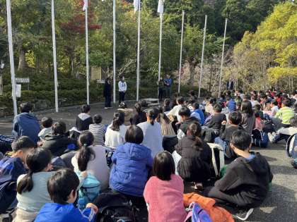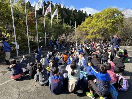 無事に花背山の家に到着しました。車酔いもなく、みんな元気に入所式を行いました。