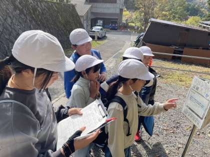 所内オリエンテーリング。班ごとに問題を探して解きながら進みます。坂道を登ったり下りたり。じっとしていたら寒い花背山の家で、汗をかきながら一生懸命に取り組みました。