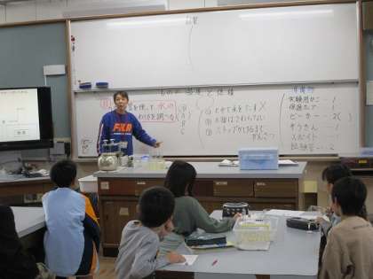 4年生の理科「ものの温度と体積」では試験管などの実験器具を使いながら、温度と体積の関係について調べました。