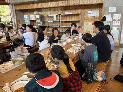 昼食は、うどんとバイキングでした。この後のラインオリエンテーリングに向けて、しっかり食べて力をつけます。