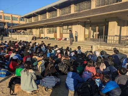 解散式です。みんな満足感でいっぱいでした。「仲間を信じて楽しく挑戦 Let's go」の合言葉通り、素敵な2泊3日でした。5年生は10時20分から40分の間に登校してください。