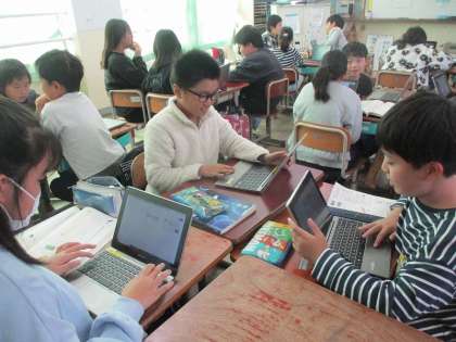「固有種が教えてくれること」で学習した資料の効果を用いて文章を書きます。テーマは自然環境を守るために自分たちができることです。今日は、テーマを決めて使う資料を選びました。資料がどのようなことを示すことができるのかグループで話し合いました。
