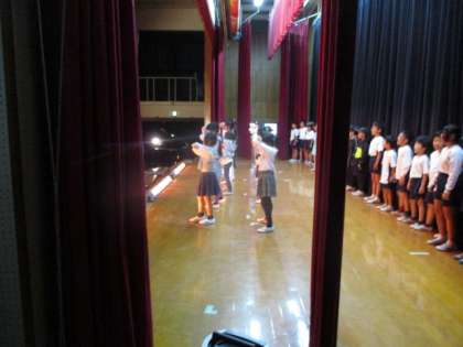 そして本番。二日目の開演前には円陣を組んでから舞台に臨みました。自分の役割に責任をもち、本番という大きな舞台に立った子どもたちに拍手を送りたいと思います。この経験を通して、どんなことを感じたのか、どんなことを思ったのか、機会があればお子さんに聞いてみてください。