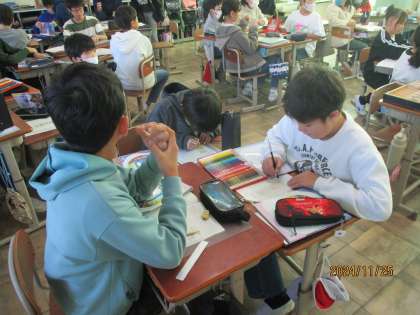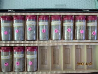 理科では地層がなぜしま模様に見えるか考えました。実際に標本をみながら考えました。