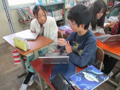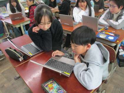「自然環境を守るために」の学習では、完成した意見文を友達と読み合いました。友達の意見文を読んで、たくさん工夫を見つけることができました。時間内により多くの友達と読み合いができるように、積極的に取り組んでいました。