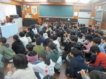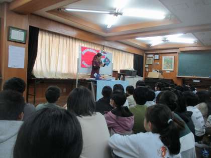 たくさんの笑いのあふれる指導で子どもたちも興味津々でした。楽しい中にも分かりやすく、必要性を感じさせてくれるお話でこれからの歯磨きには一層力が入るのではないでしょうか。