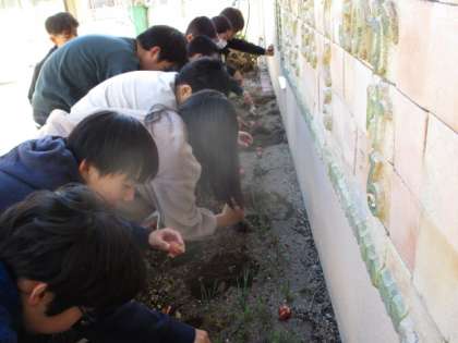 栽培委員会、11月の活動はチューリップの球根植え。花屋さんには、色とりどりの球根がならんでいます。どんな色で咲くかは春のお楽しみ。「新1年生は喜んでくれるかな。」などと言いながら、植えています。6年生が卒業するころにはつぼみも顔を出しているかもしれませんね。